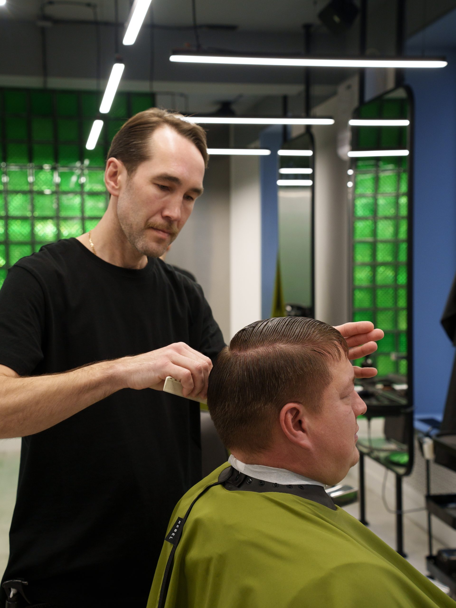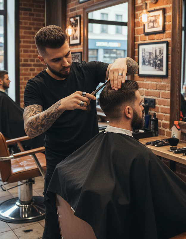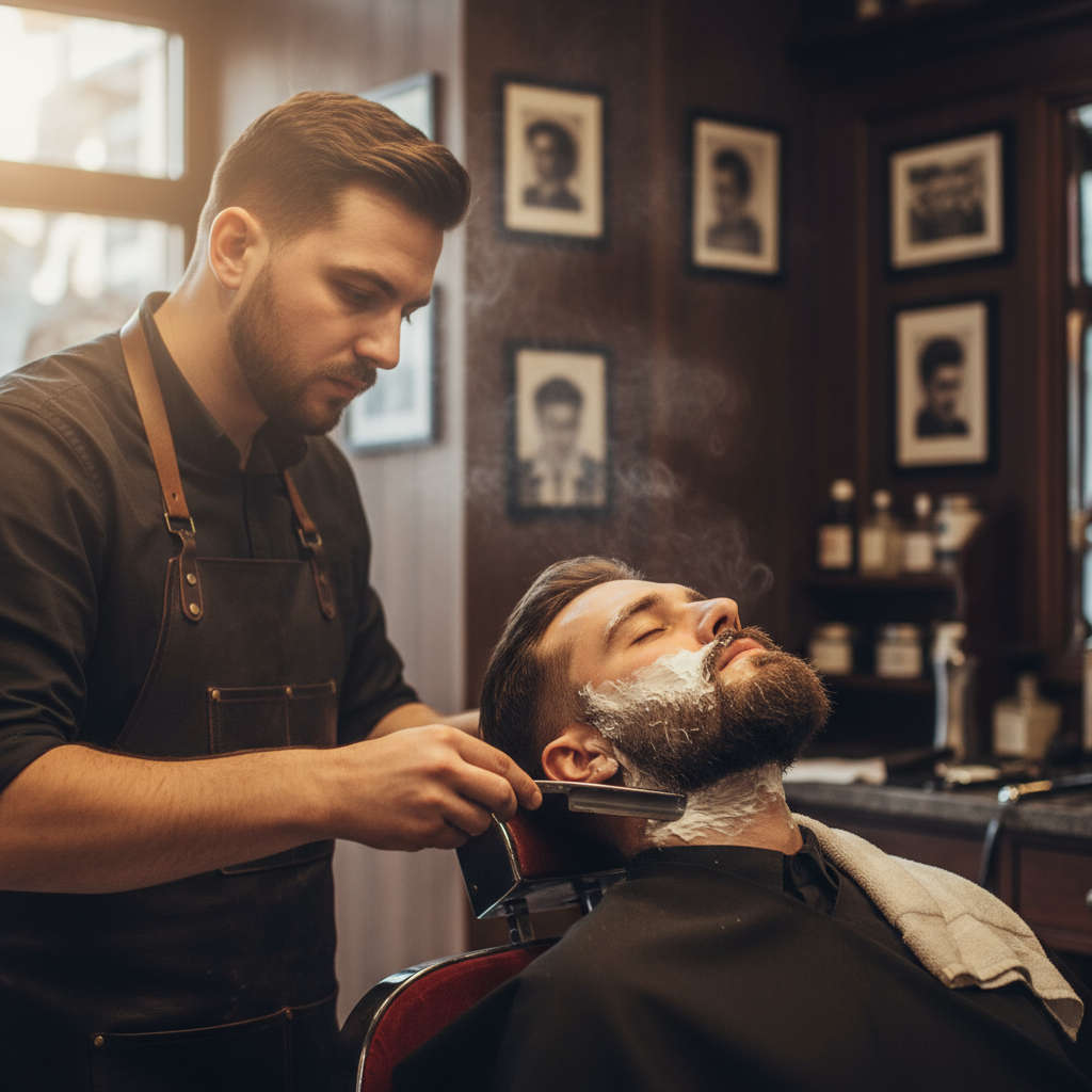 Здесь не заливают воду — только острые лезвия, мужская атмосфера и уверенность, которую видно в зеркале